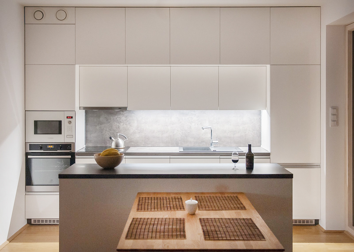 V rámci návrhu pasivního RD v Moravském krasu byla ve spolupráci s majiteli domu navržena kuchyně, kterou si realizovali sami s dodavatelskou firmou. Více o projektu RD zde: https://vladimirschmid.cz/rd-moravsky-kras